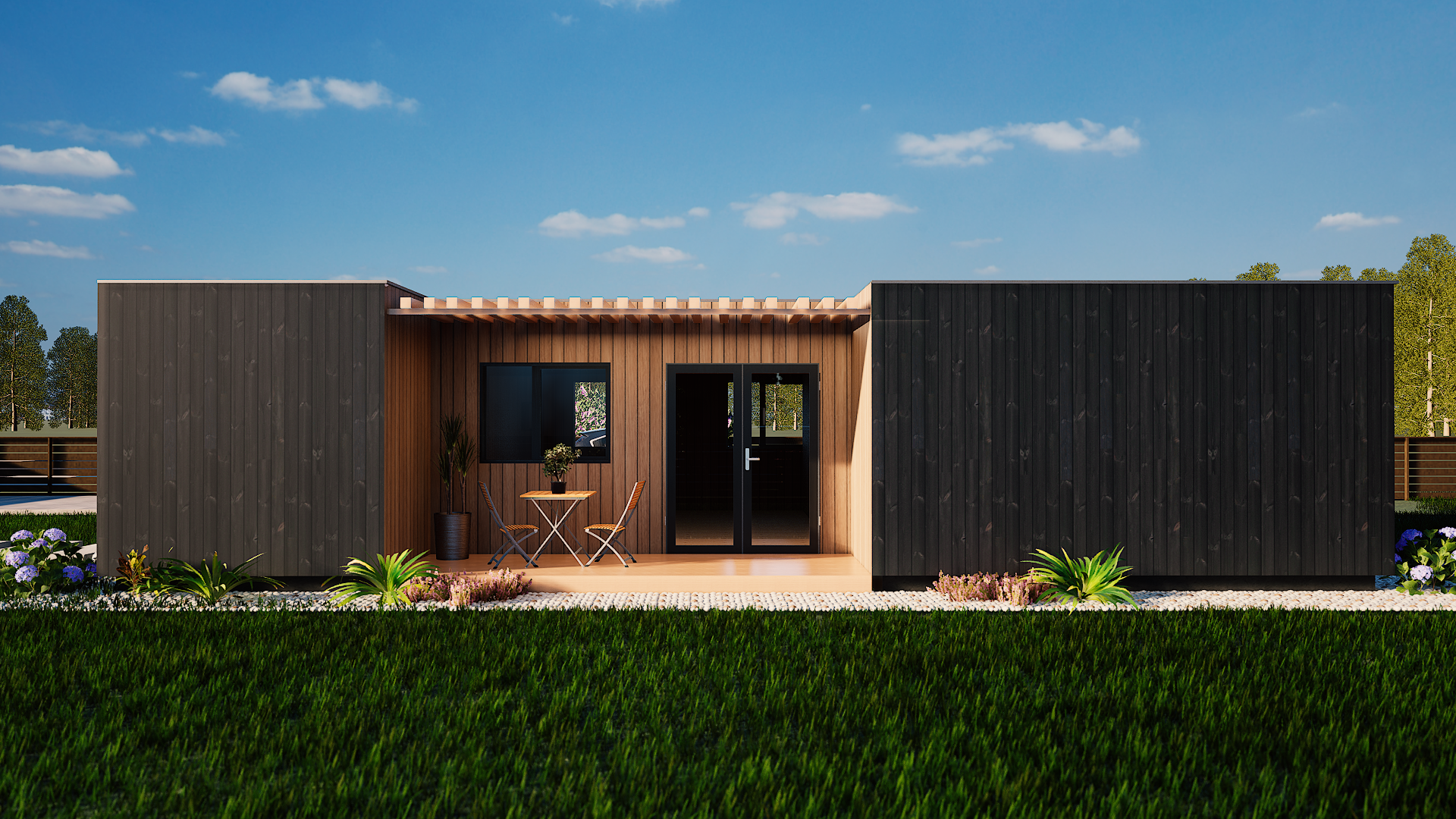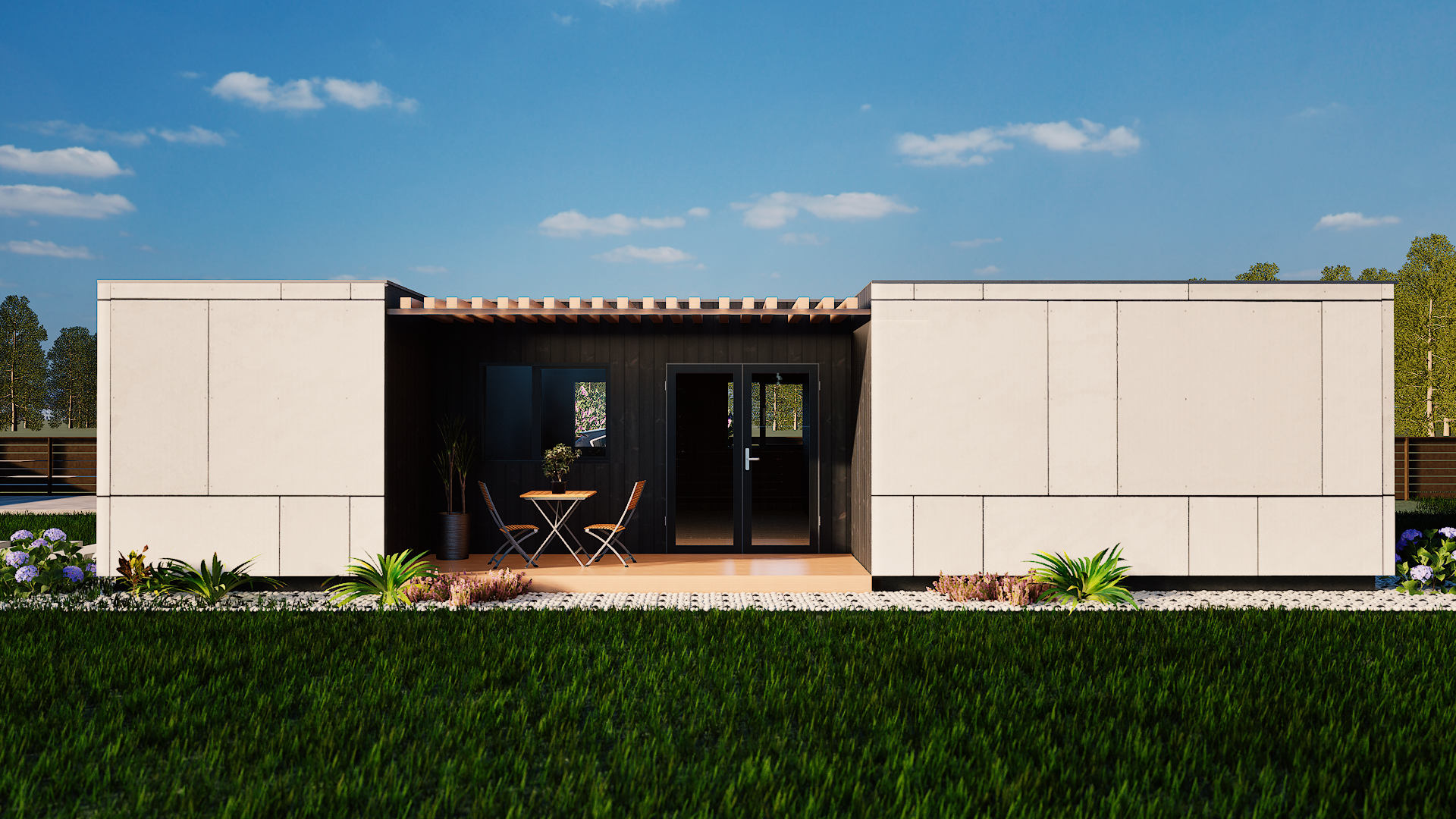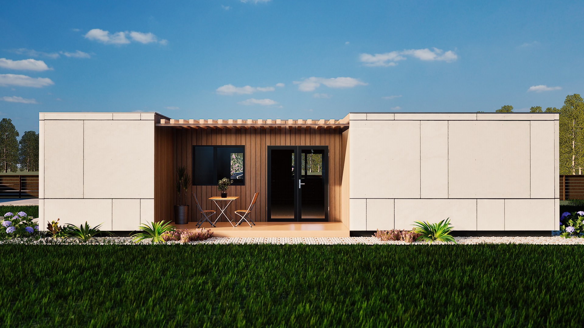 The T2 is our most versatile modular solution, designed to adapt to the evolving needs of a modern lifestyle. With two distinct bedrooms, this model offers the perfect balance between shared social spaces and private retreats.