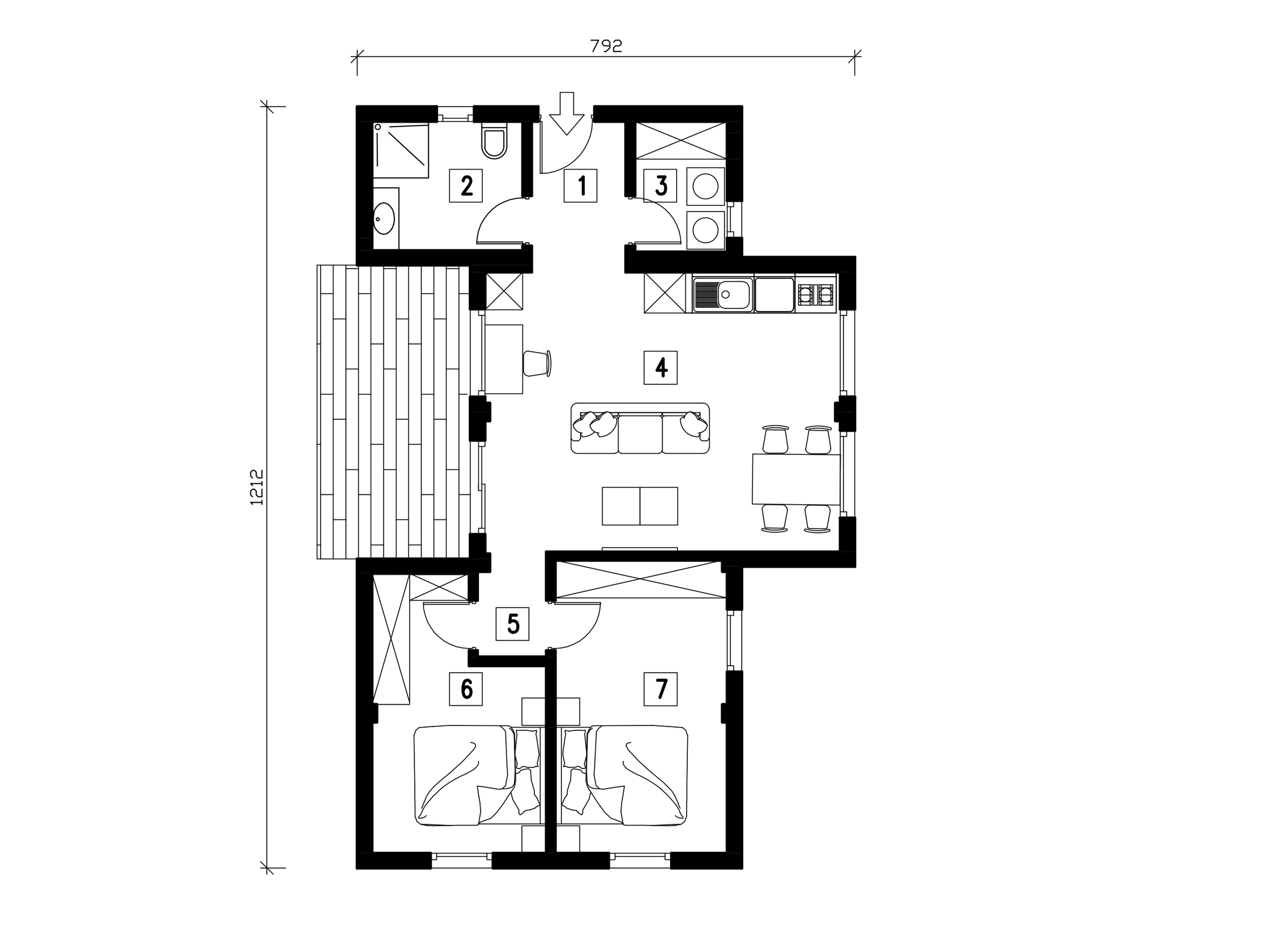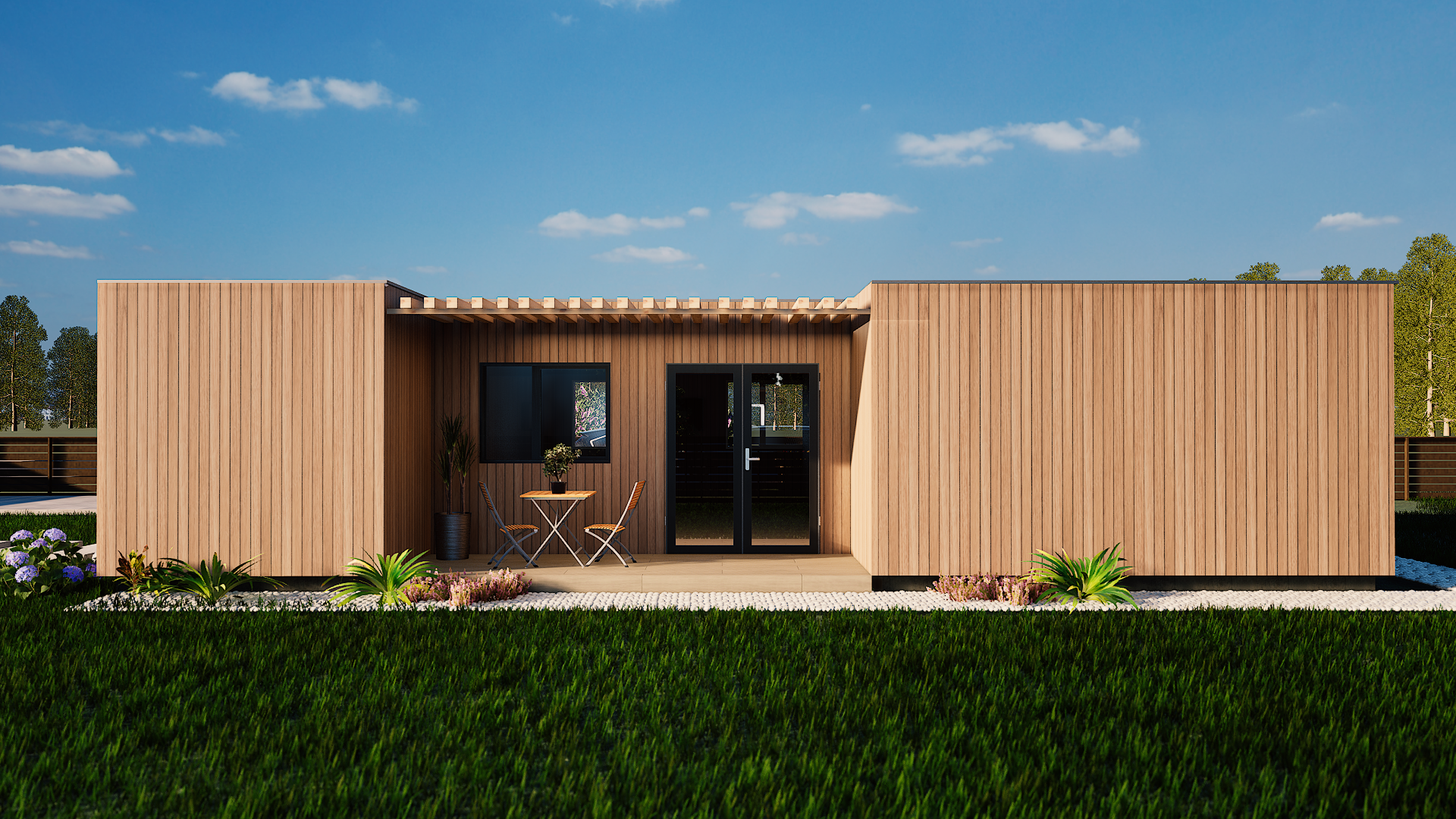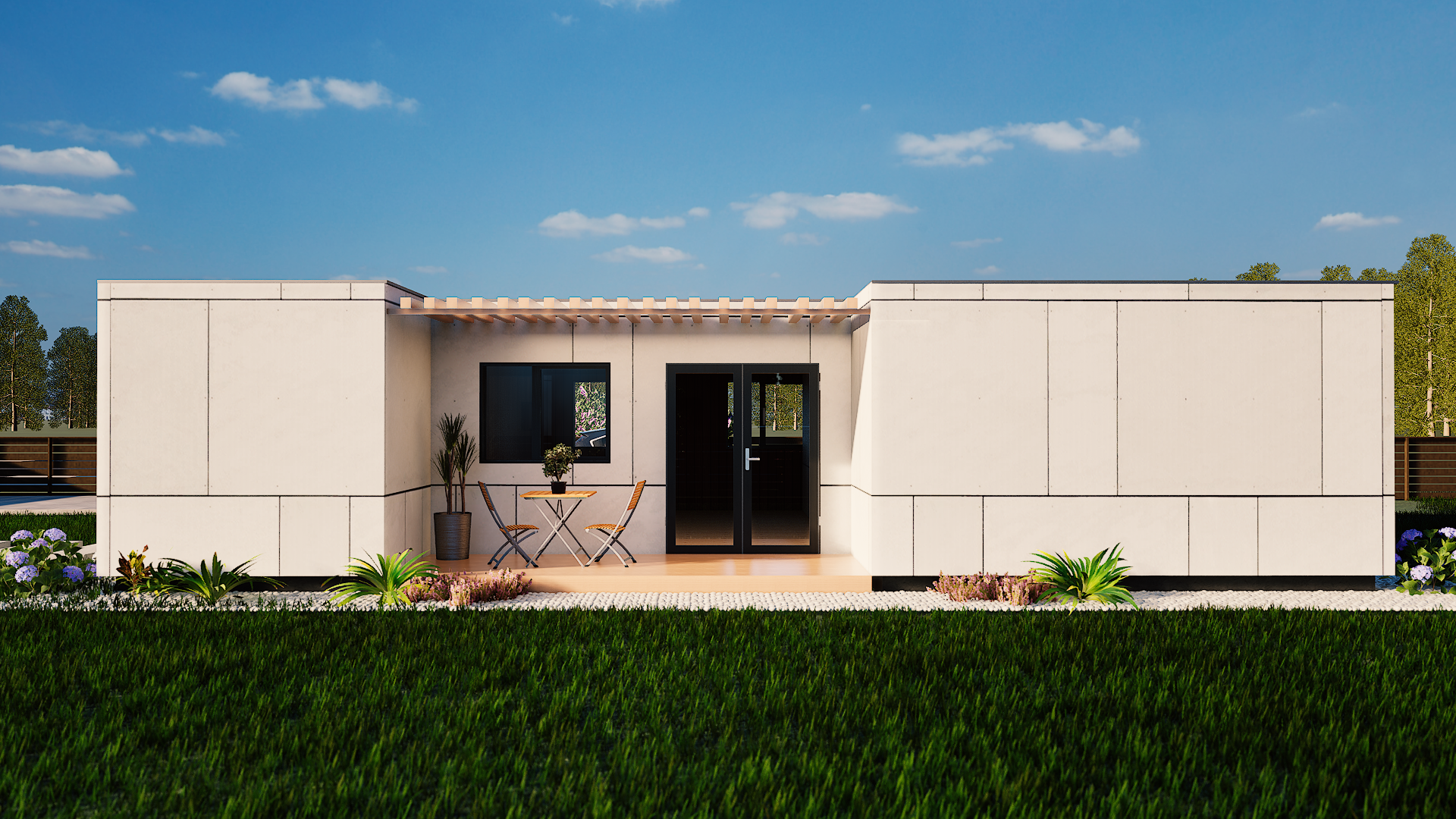 The T2 is our most versatile modular solution, designed to adapt to the evolving needs of a modern lifestyle. With two distinct bedrooms, this model offers the perfect balance between shared social spaces and private retreats.