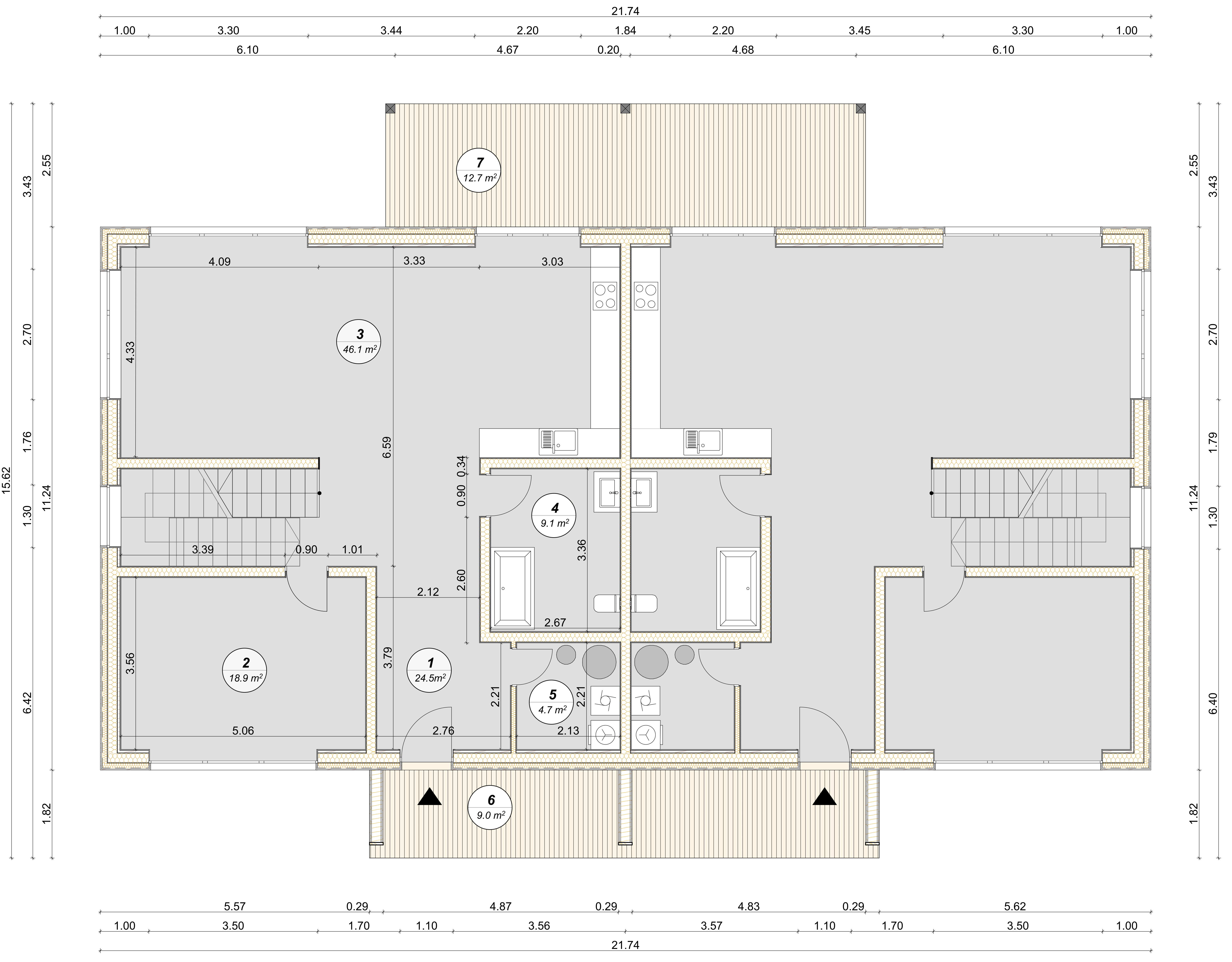 Onze superpassieve wanden, gebouwd met geavanceerde isolatiematerialen, helpen het hele jaar door een constante binnentemperatuur te behouden: koel in de hete zomer en warm in de koude winter. De uitstekende isolatie minimaliseert de behoefte aan extra verwarming en koeling en verlaagt het energieverbruik drastisch, tot wel 75% in vergelijking met conventionele nieuwbouw.