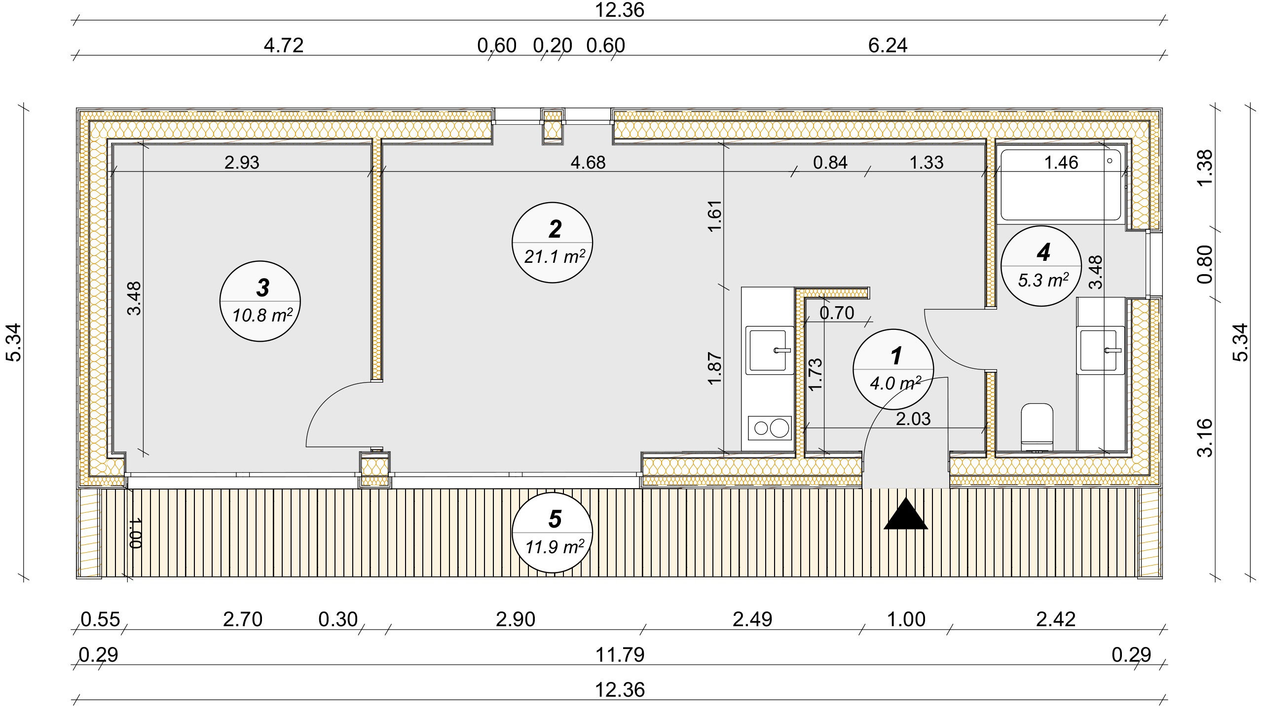 Deze configuratie biedt extra externe isolatie voor het skelet van het gebouw, met een isolatiedikte aangepast aan de lokale klimaatomstandigheden.