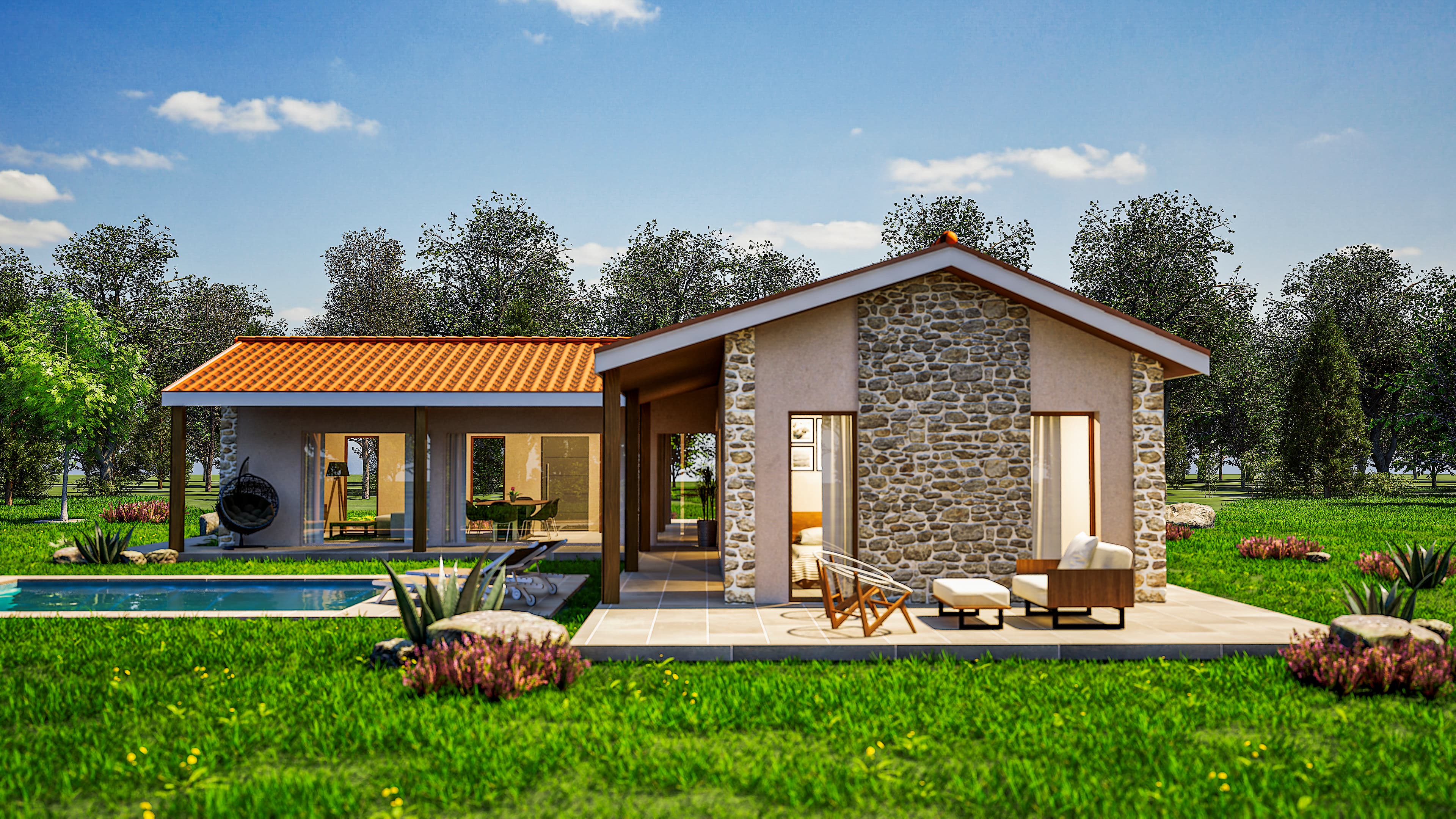 With its iconic tiled roof and elegant stone accents, this model creates an inviting, sun-drenched atmosphere that feels both authentic and visionary.