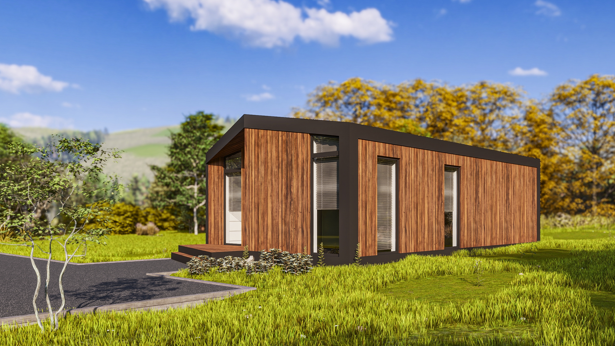 Introducing Herning, a masterclass in modular minimalism that redefines the relationship between interior comfort and the natural world. This model is characterized by its bold dark frame and warm, vertical wood cladding, creating a sophisticated aesthetic that feels both modern and deeply rooted in its environment.